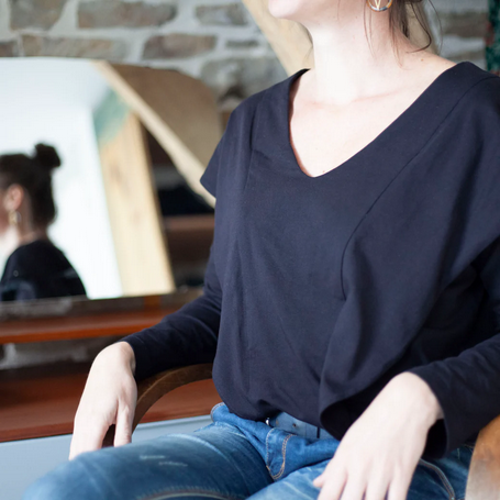 Je lorgne donc maintenant sur des hauts "allaitement compatibles" puisque le débarquement est imminent. J'ai repéré le haut "La Cocotte" chez Klafoutis couture qui me conviendrait avec son volant. Pour utiliser une carte cadeau j'ai également acquis le pyjama "Soupir" de Maison Fauve, pas spécifiquement destiné à ça, mais au moins, il s'ouvre en haut, ce qui sera sans doute plus pratique que 95% de mes vêtements !