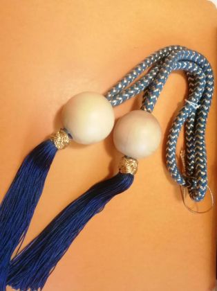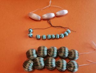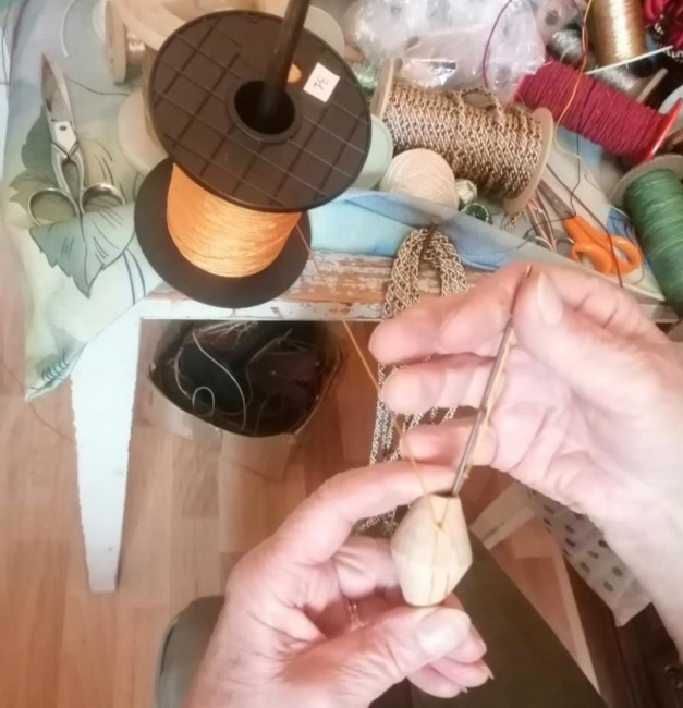 - les djellabas : il y avait une forte demande des pays du Maghreb pour les tomebouls [Note : aucune idée de l'orthographe] : des boules de 4 mm satinées à la main, cousues sur un galon fait au métier à tisser à l'atelier, qui étaient ensuite cousues comme un liseré de 2 cm sur les djellabas.