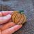 Après visionnés de nombreux tutos, je me suis lancée et j'ai beaucoup aimé broder cette citrouille. Il faut être assez précis mais une fois qu'on a compris le truc, ça va assez vite. Une fois le motif terminé, il faut le coller sur un support (j'ai utilisé une chute de cuir d'un vieux porte-monnaie) et ajouté la partie broche.