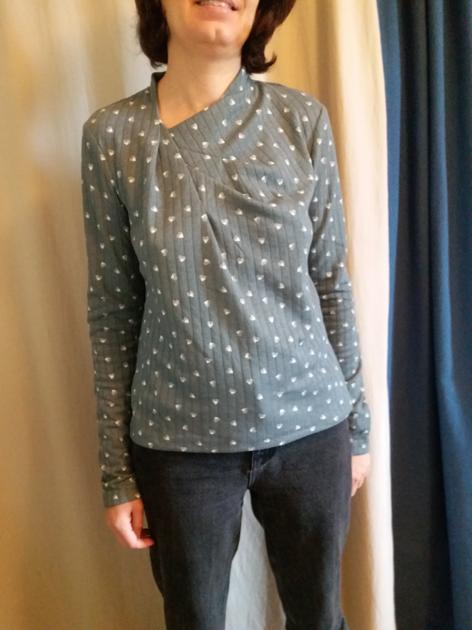 J'ai fait ma version dans un jersey bio de fil étik et malheureusement, il a besoin d'être repassé, ce qui n'est pas facile vu le patron...donc bonne idée le jersey qui n'a pas besoin d'un coup de fer !