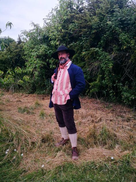 Ce costume de bûcheron du XVIIIe est composé d'une chemise (déjà cousue l'année dernière), d'une culotte, d'un gilet, d'une veste, d'un foulard, de chaussettes hautes, de sabots et d'un chapeau.