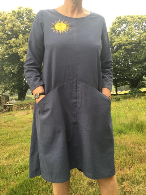 J'aime beaucoup la découpe des poches et ce soleil, qu'il est beau, il est parfait sur cette robe !