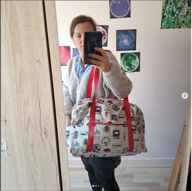 Dans ma frénésie de sacs en tout genre, il manquait le sac bowling : c'est chose faite avec un mélange de tutos et un charmant tissu du magasin Quartier des Tissus à côté d'Aix-en-Provence. J'ai ajouté plein de poches (suivant ma philosophie : y'en n'a jamais assez, tant qu'il reste des chutes tu en remet !)