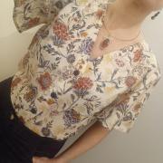 Cousu dans un tissu coton stretch avec tissage qui lui donne un aspect presque satiné (presque seulement, pas totalement).