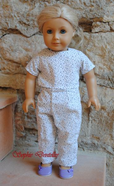 Fin de ce défi d'automne, le pyjama. Coupé dans une chemise déchirée de mon mari (pas cousue par moi!). Le motif est bien à l'échelle de la poupée.