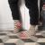 J'ai modifié le motif initial du patron pour changer de fil moins souvent (qui a envie de changer de fil tous les deux rangs ?) et devant le nombre de fils à rentrer sur la première chaussette, j'ai bricolé un truc sur la deuxième pour coincer mes fils sur la hauteur tout au long du tricot. C'est moche et en plus 1/ j'ai mal réparti mes mailles sur mes aiguilles donc la démarcation est très visible, 2/ j'ai oublié de glisser mes premières mailles de rang pour que les rayures soient en face.