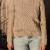 La deuxième photo montre la version modifiée du pull: le col a été refait car c était trop serré et désagréable à l' usage. Un fil élastique a été ajouté dans les côtes à la taille pour resserrer à ce niveau.