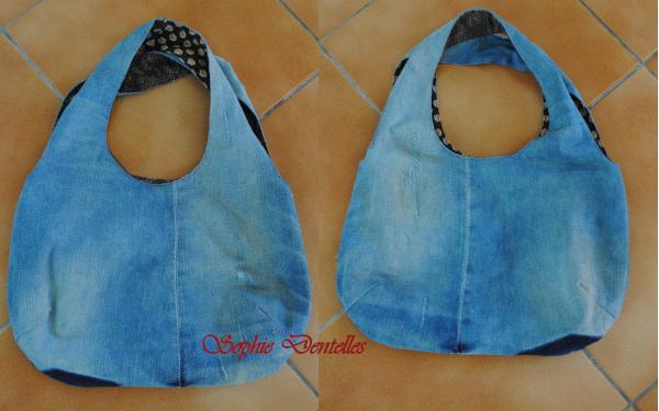 Je teste les projets avant de les proposer au FabLab de Nîmes (c'est moi qui anime l'atelier couture). Pour ce sac j'ai pioché dans: un vieux jean déchiré, une chemise provençale, une chemise australienne, trois pièces pendues sur la tringle "habits à recycler" de mon atelier.