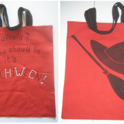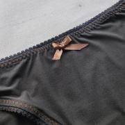 J'ai utilisé du coton japonais texturé, avec quelques touches de doré. J'ai doublé avec une chute de crêpe noir entoilé, et mis une triplure en molleton assez ferme. Le tout piqué avec du fil polyester. J'ai choisi un élastique noir avec du lurex pour la fantaisie pour fermer le rabat.