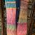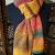 Pour l’écharpe multicolore, j’ai utilisé une grosse pelote de 200 grammes Gomitolo Arte de la marque Lana Grossa, achetée là encore à la Grange à laine. J’ai utilisé le modèle « Vert printemps ». Le point se fait sur 36 rangs, le motif étant chaque fois décalé. Il reste assez facile à faire si on suit bien l’ordre des rangs. Au lieu de faire du point mousse au début et à la fin de l’écharpe, ainsi que sur les côtés, j’ai fait du point de riz.