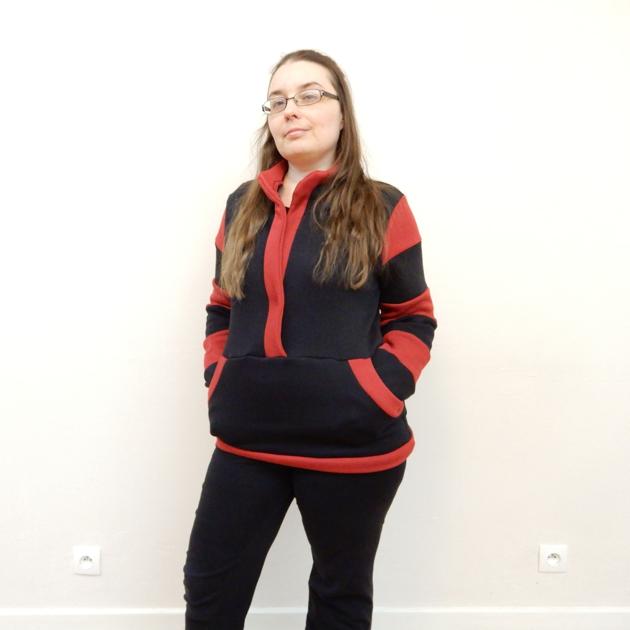 Ce sweat est super confortable et j'imagine qu'avec une surjeteuse, il est conçu en moins de temps qu'il n'en faut pour lire la notice ultra complète afin de suivre chaque version en détails (avec ou sans manches, encolure fermée ou ouverte, avec option capuche).
