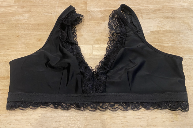 Coffret "coudre son soutien-gorge" acheté chez Artesane à sa sortie il y a plusieurs années, modèle Aphrodite. J'avais commencé cette toile (entendre par là matières plus cheap que celles du coffret mais a priori pour un projet portable) il y a genre 3 ans, et tout laissé de côté tellement je trouve pénible de chercher les passages de la vidéo (il y a 3 modèles et toutes les étapes similaires ne sont pas répétées chaque fois). Au final je suis très contente d'avoir terminé, mais pas sûr que je le porterai, le bonnet est un poil petit et la dentelle gratte un peu. Je ne dirais pas que ça m'a donné envie de m'attaquer au coffret, en fait j'aime lire des explications détaillées mais pas coudre à partir d'une vidéo... Pour celles que ça ne dérange pas je dois dire que les explications sont très claire et ça se coud bien et même pardonne parfois mieux les petits défauts que sur du C&T.