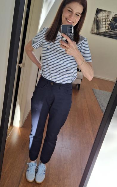 Ma version crash-test de Sacha, un "mom jean" réalisé dans une gabardine marine donnée par ma mère. Tout est de récup sauf le fil et le patron, donc toile portable vraiment pas chère.