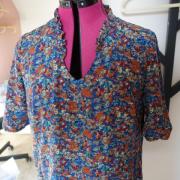 Pour construire le patron, je suis partie de la blouse Tilda de Maison Fauve : j'avais une emmanchure et des manches. J'ai remonté l'encolure, tracé des empiècements qui s'arrêtaient au tiers des emmanchures, retracé le bas en ajoutant des fronces devant et dos. J'ai cousu une toile : nickel.