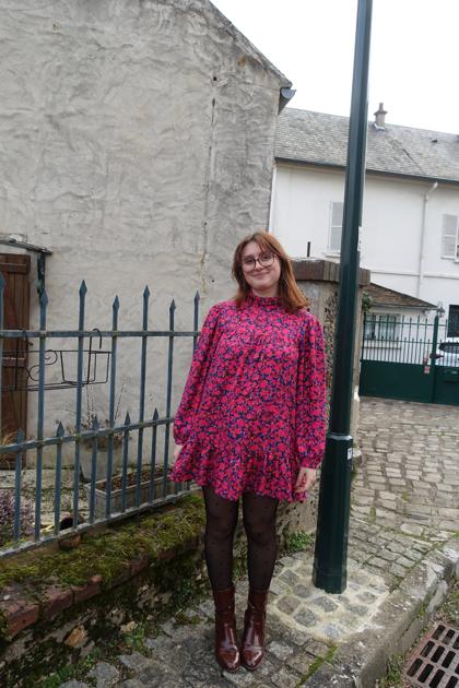 Au salon Créations et Savoir-faire, ma fille avait remarqué une robe qui lui plaisait beaucoup : Zélie, de Clématisse Pattern. Elle l'aurait voulue moins ample, avec des manches plus longues et plus froncées, une ouverture en goutte au dos, pas de passepoil… bref, autant me passer du patron ! Un coup d'œil quand même au métrage préconisé : 2m80, mazette ! La viscose présentée (qui lui plaisait beaucoup aussi) n'était pas donnée (My dress made, très belle qualité). Je suis partie du principe que le métrage était dû au corps très ample de la robe et qu'une largeur de laize serait bien suffisante. Ce serait son cadeau de Noël.