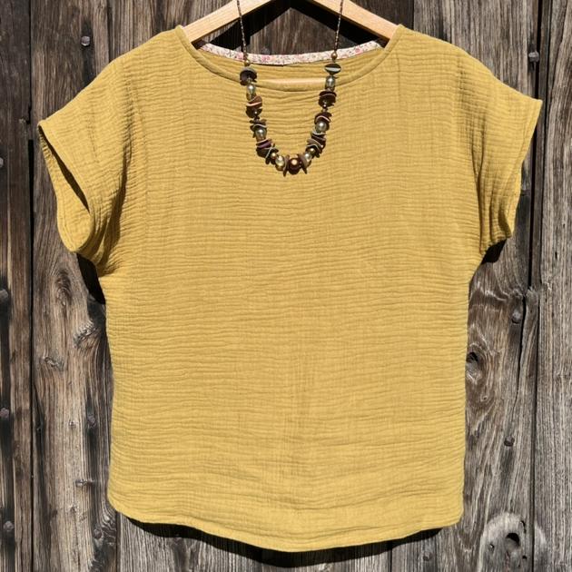 Ici c'est un petit morceau de double gaze qui a servi, pour assortir ensuite à une jupe que vous pourrez retrouver aussi dans ma galerie ...