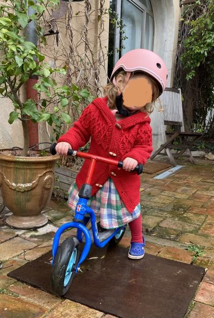 Refusant encore d’acheter un pull, je me suis mis en tête d’en tricoter un vite vite. Un pull ROUGE, a demandé Annabelle !