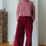 Blouse Vertige en taille 34, ma jupe en 36 étant trop grande pour moi dans cette taille, j'ai décidé de descendre à la taille au-dessous. Bilan des courses ça va sur le buste, les manches sont un tantinet trop serrées à mon goût (à moins que ce ne soit un problème de carrure dos), mais le col baille un peu quand même. Bref, ça passe, mais niveau tombé ce n'est pas parfait.
