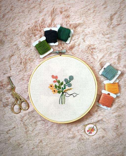 Première broderie réalisée il y a plusieurs mois lors d un atelier organisé par @ecaterina.broderie chez @diffuslainetissus à Gradignan.
