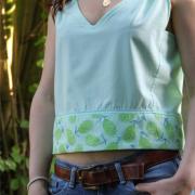 Top basique cousu dans un tissu qui ne lui convient pas mais agrémenté de quelques fantaisies maison!