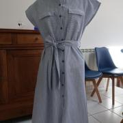 La confection de la robe n’a pas posé de problèmes particuliers. J’ai pris mon temps pour l’encolure que je voulais aussi propre que possible, et j’en suis très satisfaite.